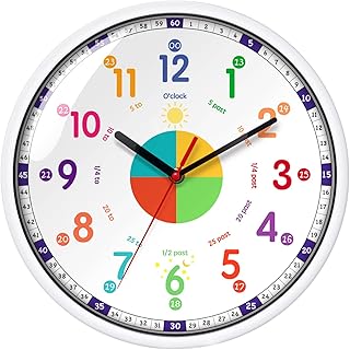 WONZOM 12 Inch Educational Time Teaching Wall Clock for Kids, Silent Non-Ticking Battery Operated Learn to Tell Time Clock, Colorful Decorative Wall Clock for Children Bedroom/Study Room/Classroom |